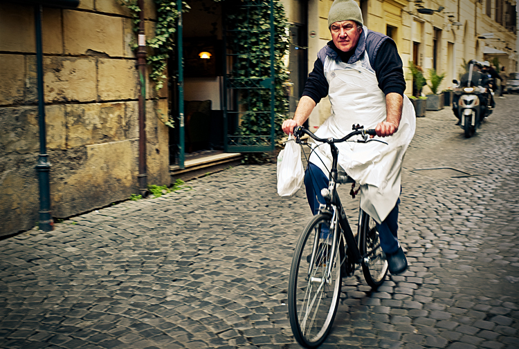 y la del carnicero llevando su pedido en la bici también. Muy genuina.