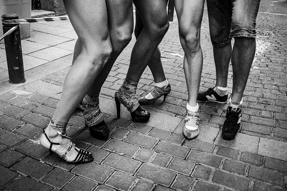 I never miss the High Heels Race in Chueca, which runs during the Pride Week in Madrid. The tight Pelayo St. becomes a trap crammed of crowds, and it is that very jam of people which gives the Race its peculiar attractive.