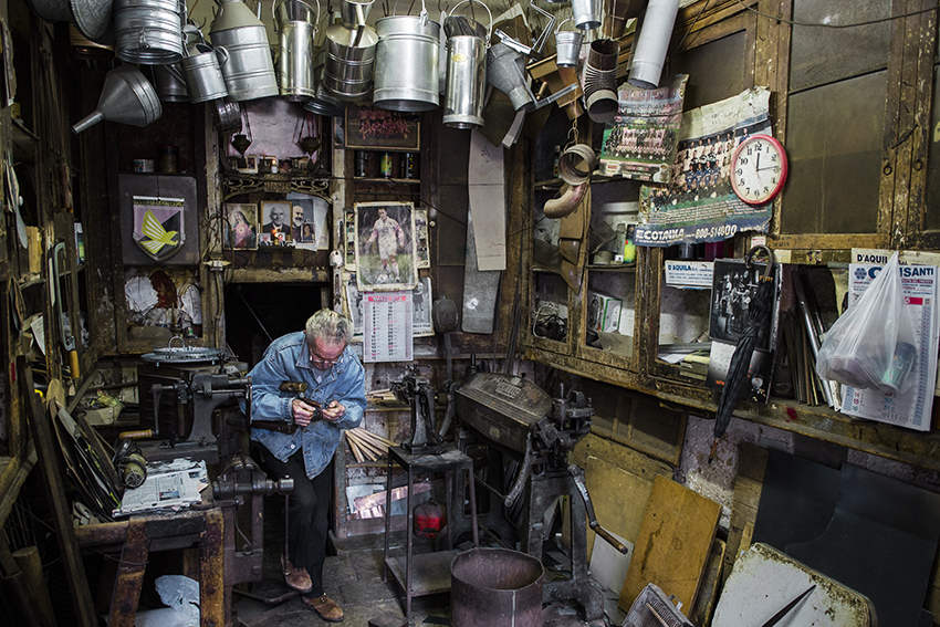 I shot this photo in March 2015, in via Calderai di Palermo. Antonino was a 87 years-old tinker that had been working during 80 years, a very nice man. I wasn’t happy with the photos and came back two months later. Alas! the shop was closed because he had died.