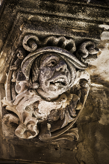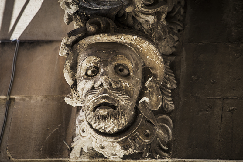 Maravilloso barroco tardío en Ragusa, toda la ciudad antigua es una auténtica joya. Como botón de muestra, las ménsulas de la fachada del Palacio La Rocca: