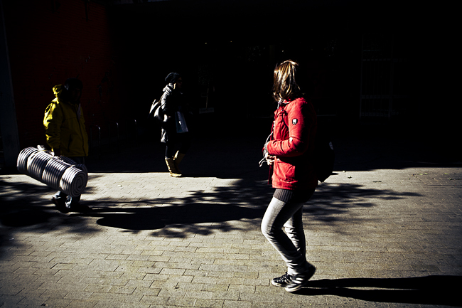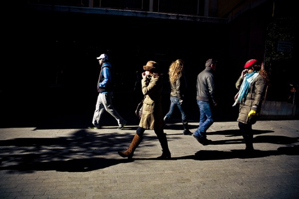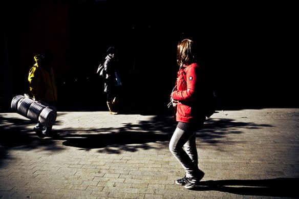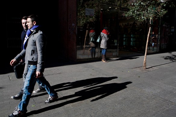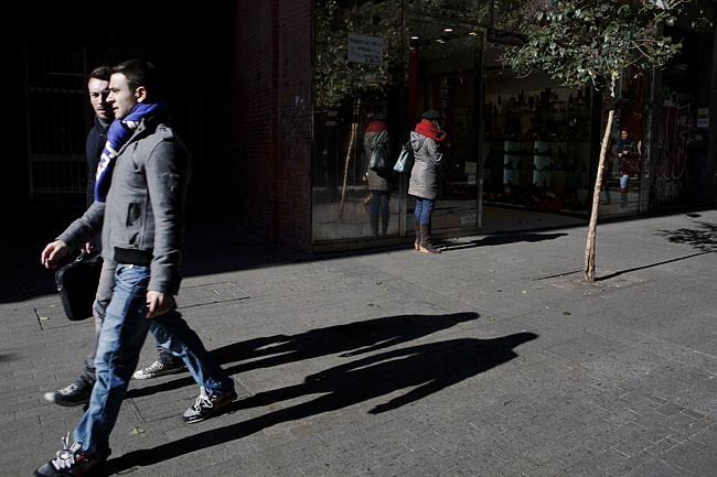 Even in the coldest weather, the winter sun in Madrid is delicious. And nothing better than to follow a very old advice: when you see an interesting place to shoot, stop and wait for something to happen. These pics were shot from the same place within six minutes of interval, fifteen in total, in a sunny morning in Fuencarral Street, Madrid, five days ago, at the peak of the cold polar weather.