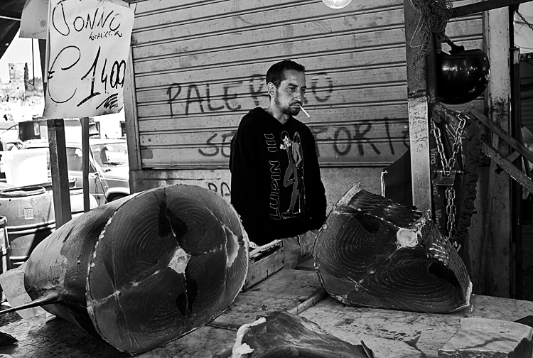 At Ballaro food market, Palermo, life is … chatting or just standing by.
