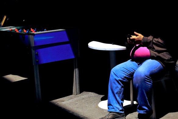 Madrid summer is killing. With temperatures raising to 40º, you don’t feel like walking around the streets with a camera in hand. This picture was taken at the beginning of June when it was still possible to stroll around. The place is San Antón market, in Chueca, a fancy place to spend lots of money in silly things. Though hats can be very useful against relentless sun.