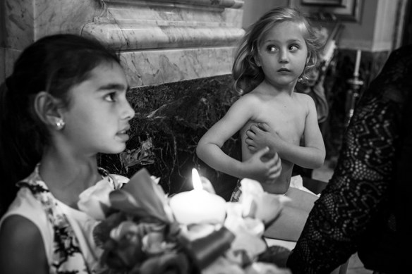 Estupendo taller de fotografía con Ernesto Bazán en Nápoles, donde fuimos invitados al bautizo ortodoxo de una niña. Pobrecita, el agua debía estar helada!
