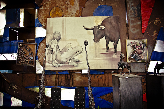 Sometimes you find funny things wandering the streets. Days ago a painter had put up a huge canvas in front of the Cibeles palace, painting with a sharp eye the view. Suddendly I remembered some fantastic Italian trompe l’oeil and I couldn’t resist to make some shots.