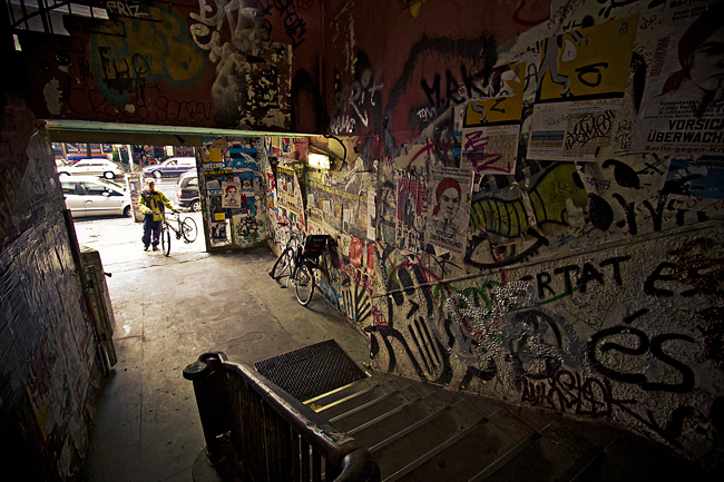 El Kunsthaus Tacheles, centro de arte alternativo, es un edificio singular de Berlín. Fue construido en 1907 como centro comercial, un concepto muy nuevo en la época. Tras la caída del Muro de Berlín en 1989 fue ocupado por artistas que se instalaron ahí y abrieron talleres, estudios de arte, un night club y un cine. La municipalidad seguía adelante con sus planes de demoler todo el edificio por estar en la ruina. El grupo de artistas ocupantes, sin embargo, encargó un estudio que demostró que el edificio gozaba de muy buena salud, así que la demolición se paró. El Tacheles se convirtió en parte esencial de la escena artística, de cultura alternativa y de comunicación, no sólo alemana sino internacional. Hoy en día, el futuro del Tacheles es incierto.